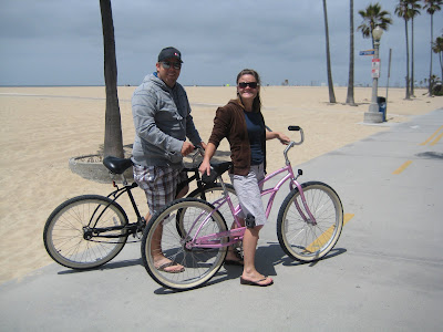 Every Wednesday Kory has late start day, which means he gets to go to work 2 hours later than usual. One Wednesday we went to Newport beach and rented bicycles and rode them around. It was a lot of fun. We tried the bicycle built for two first, but that didn't work out so great!